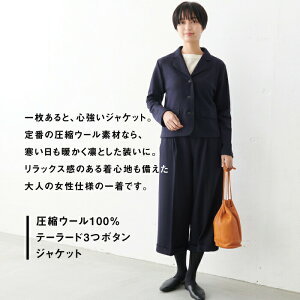 【7日9:59までポイント5倍デー】[ジャケット レディース 冬 秋 黒 フォーマル] 圧縮ウール100% テーラード 三つボタン ジャケット / 日本製 40代 50代 60代 女性 ファッション ウール 卒業式 入学式 母 ママ